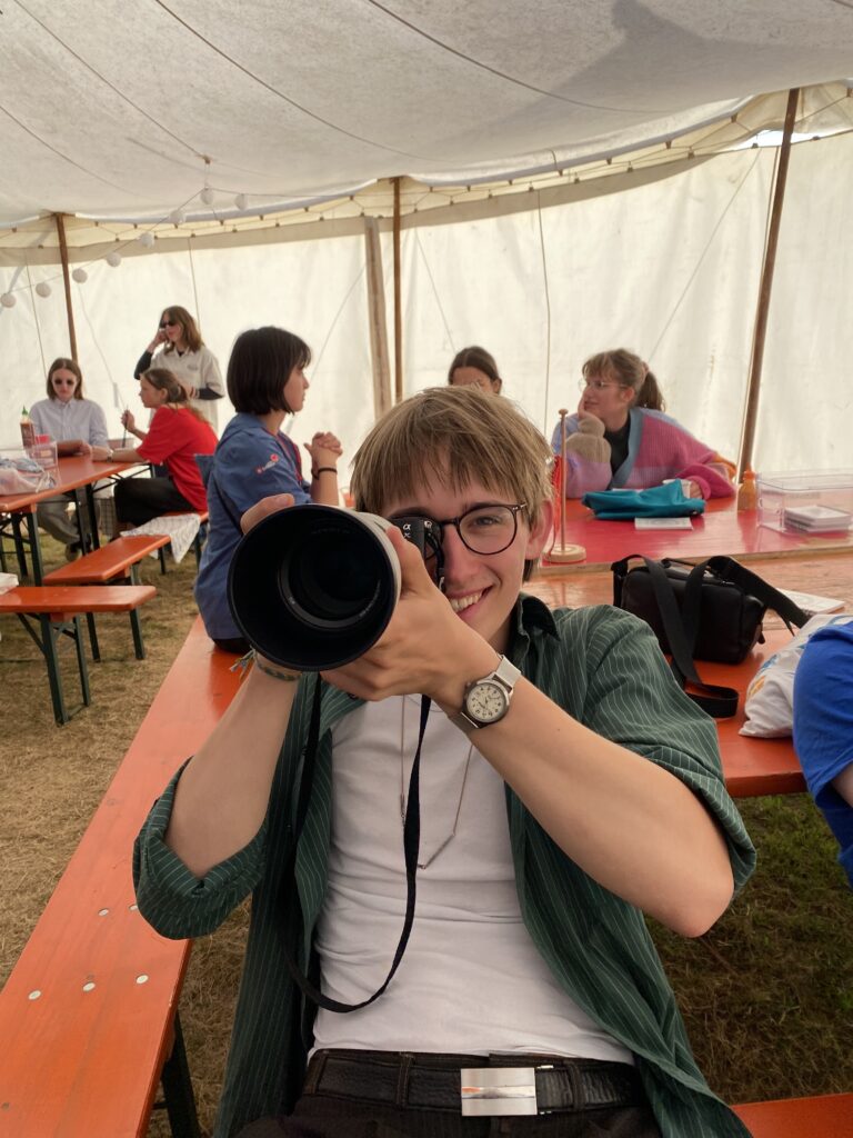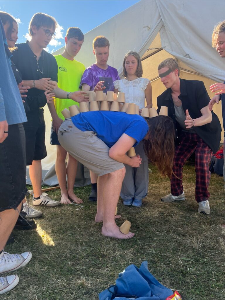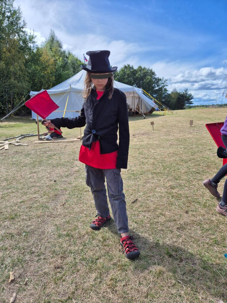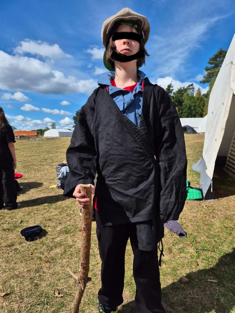 Vor dem Foto gab es noch eine kleine „Bescherung“: Alle haben ihr nagelneues Zeltlager-2025-Falken-T-Shirt bekommen – und natürlich wollten wir die gleich auch stolz präsentieren. Was wäre besser geeignet als ein großes Gruppenfoto? Ein riesiges Danke geht an Kalle, der sich nicht scheute, den 10‑Sekunden‑Spurt vom Selbstauslöser bis in die Mitte der Gruppe hinzulegen – und es rechtzeitig geschafft hat. Ohne diese sportliche Meisterleistung wäre das Bild nur halb so komplett gewesen.