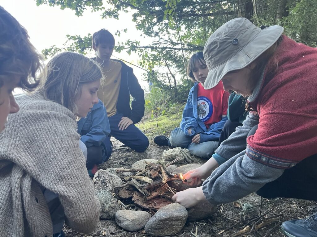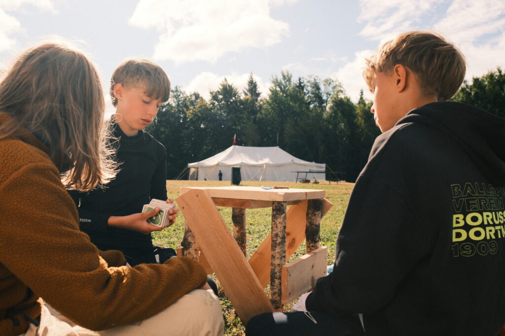 Nach dem Mittagessen ging es mit den Abenteuer-Neigungsgruppen weiter. In kleinen Gruppen haben wir gelernt, wie man ein Lagerfeuer richtig entfacht und darauf sogar eigene Brotfladen backt, wie man ein Dreibein aus Waldholz baut und mit einem Hordentopf eine Suppe selber kocht. Andere haben sich auf den Weg gemacht, um Pilze zu sammeln oder zu angeln. Wieder andere erkundeten die Wiesen nach Wildkräutern, die wir später gemeinsam für einen leckeren Tee verwendeten. Und auch das Angeln konnte man lernen.