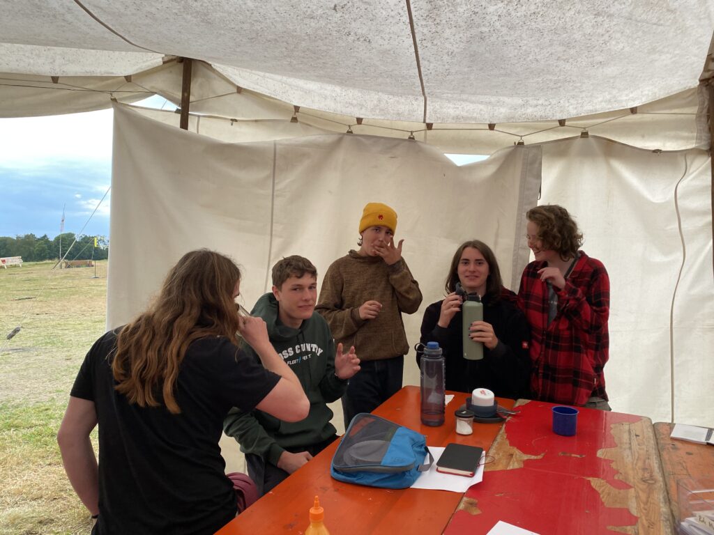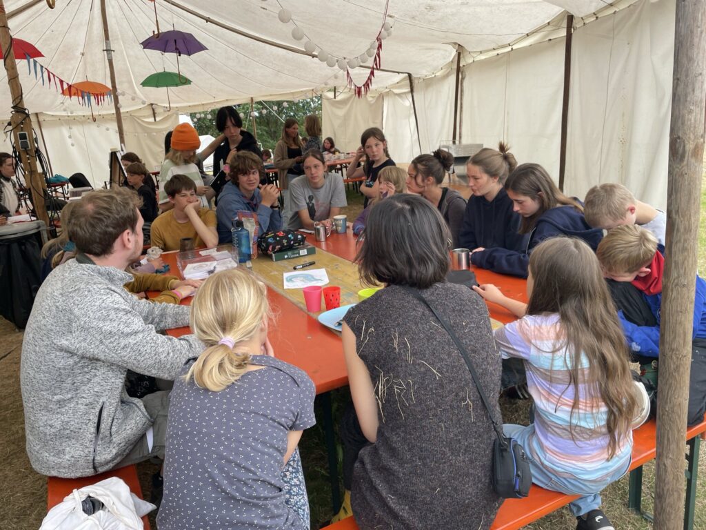 Langsam bereiten wir uns darauf vor, ins Bett zu gehen. Doch bevor Ruhe einkehrt, werten die Gruppen den Tag noch gemeinsam aus – voller Eindrücke, Ideen und Gedanken. Morgen beginnt wieder ein ganz normaler Tag im Zeltlager. Aber was bedeutet hier eigentlich normal? Vielleicht ist es gerade diese Mischung aus Spiel, Ernst und Gemeinschaft, die dieses Erlebnis so besonders macht.